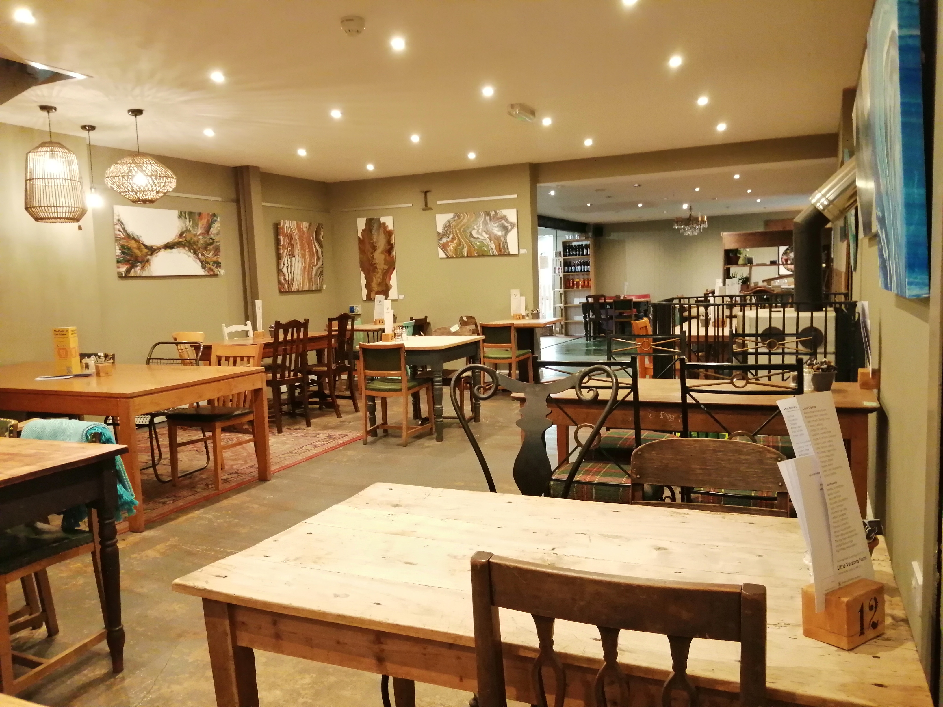 “One of the things that’s quite fun is all our furniture is for sale, so the layout and configuration of the cafe changes all the time. We have a relationship with a local scrap man and antiques dealer in one of our barns. All our tables and chairs are his and it means we often have big farmhouse tables seating 10. It allows us to be really flexible for groups.”