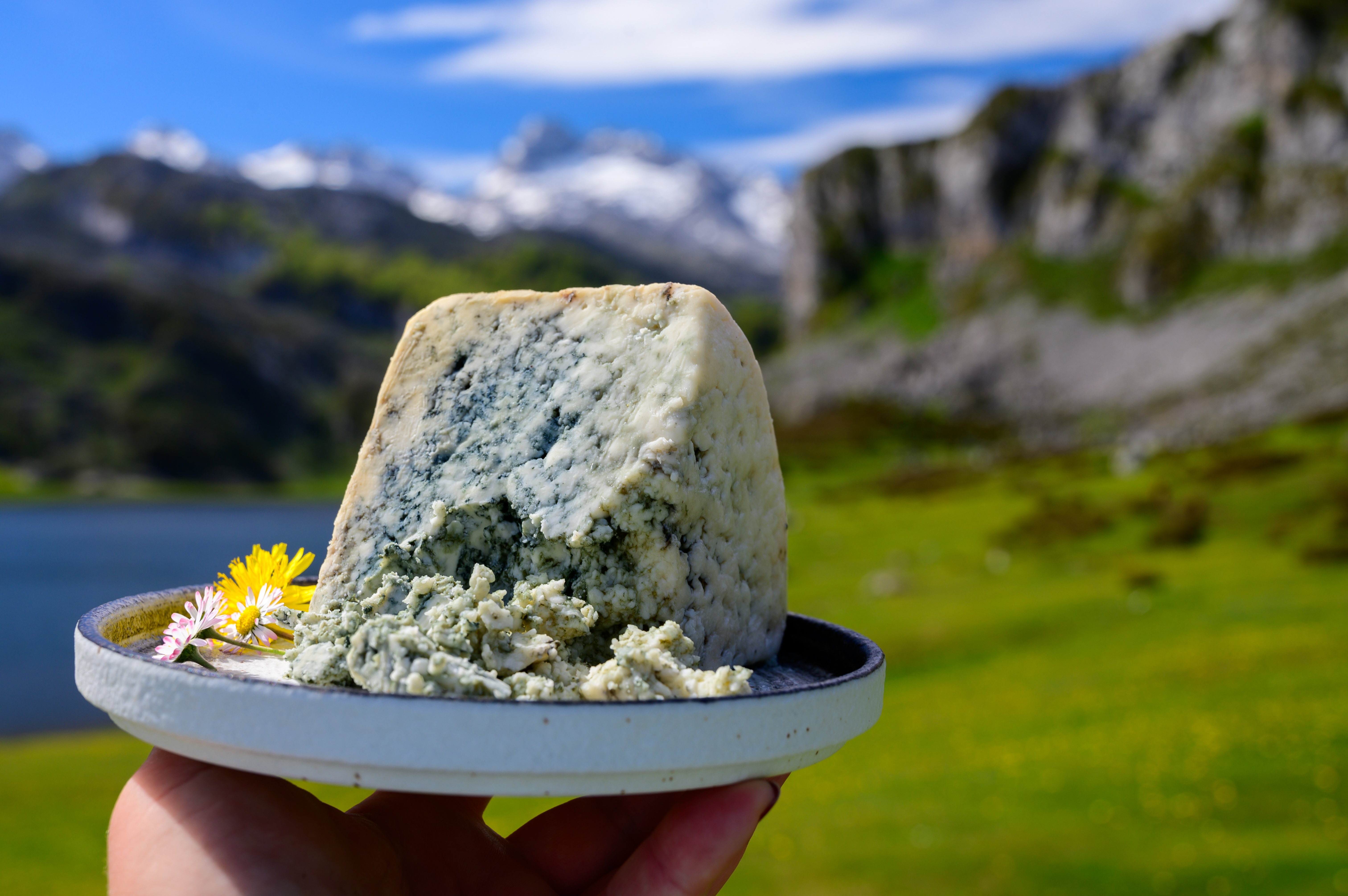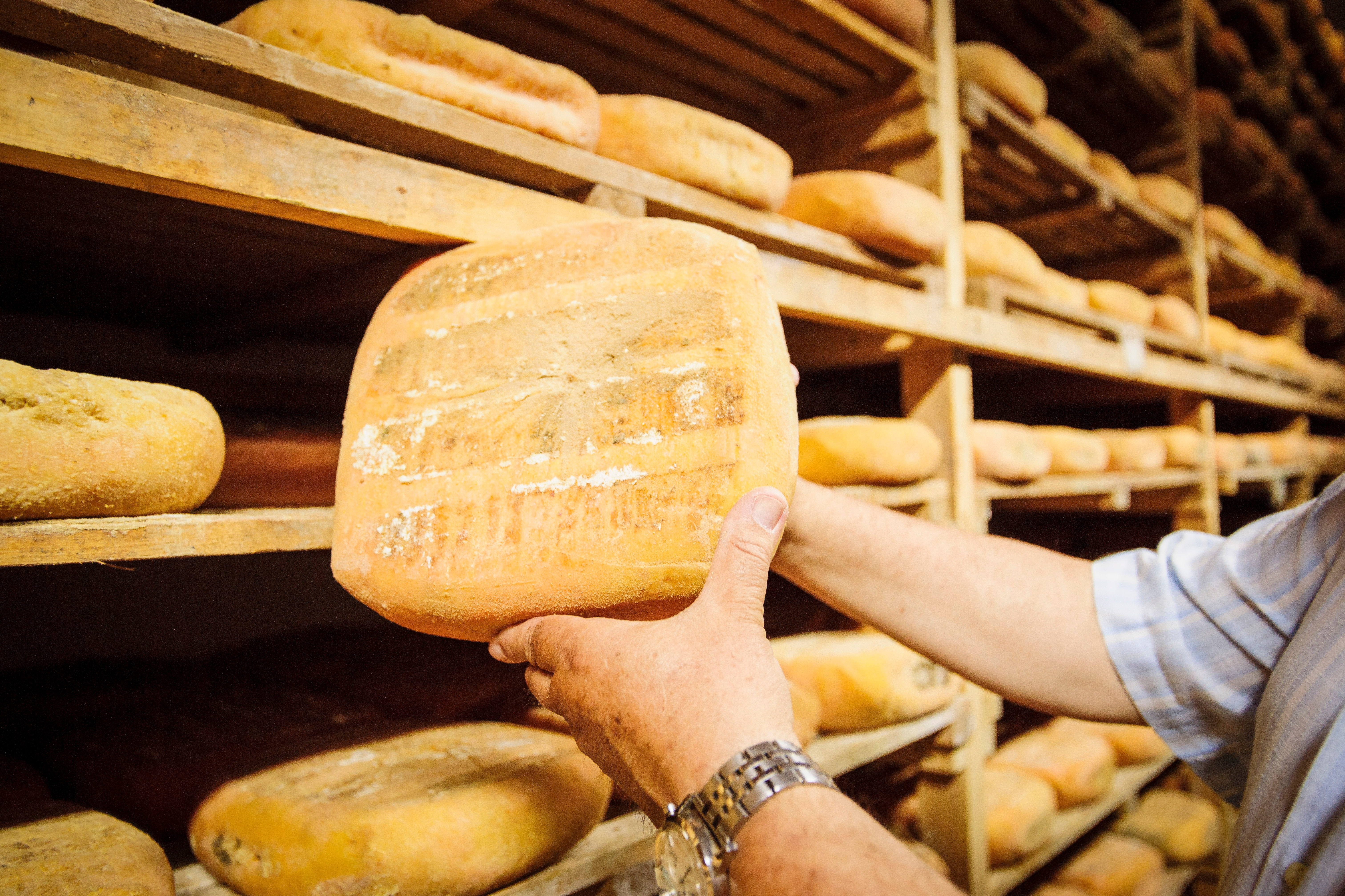 Cabrales is one of my big loves, probably because my father was born in Leon. This strong cheese is made in caves at 1,500m in the mountains, where artisans have to go two times every week to wash them. You don’t have electricity. You have to have battery powered lights with you. And you don’t have water. There are buckets collecting drips of moisture from the caves to wash the cheeses. Some of these caves are not accessible. You have to drive to a certain point and climb the mountain 300m to 500m more.