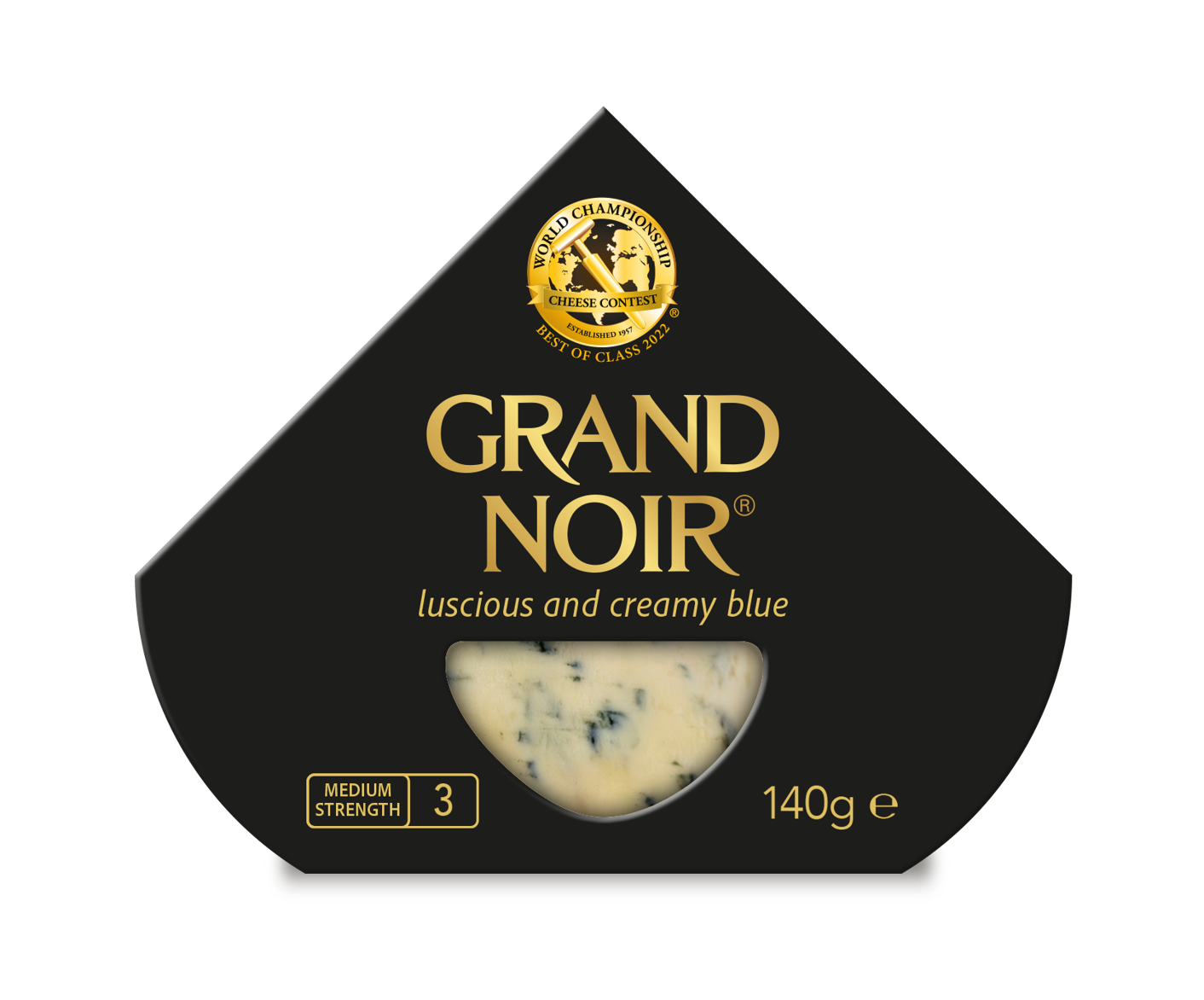 Grand Noir is lactose and gluten free, suitable for vegetarians, and is the ideal next step up from its sister cheeses – the creamy, mild, soft Cambozola and Montagnolo – being aged for around six months, with a more intense, sharp, sweet taste, and buttery finish.