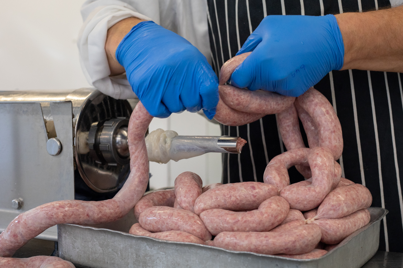 Meat in the butchery – pork, lamb, beef, chicken – for example, is all grown on the farm (apart from turkeys from a trusted supplier) to ensure its standard never wavers from what they, and their customers, expect. “Because we’re certified organic there’s a big difference between us and other producers. That we cannot buy GM feed for our animals makes this incredibly expensive. It’s very stressful buying in feed, but we supplement it with what we grow here.”